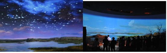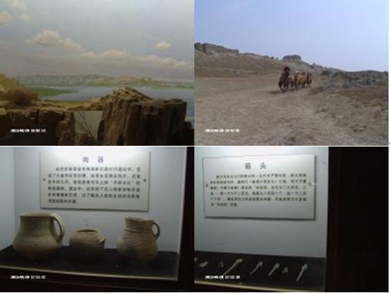 帶著對水洞溝的好奇,坐上大巴,很快見到了傳說中的水洞溝,剛走進大門,看到的是一片荒涼,心中不免有些失望。隨著導游的聲音,走進了水洞溝遺址博物館實景體驗區(qū),我的心情豁然開朗,從繁星點點的蒼穹、裊裊升起的炊煙、成群奔跑的犀牛、鴕鳥、羚羊,到水洞溝人打磨石器、分割獵物、制作鴕鳥蛋皮項鏈,到家園被毀、水洞溝人含淚離開,我們在短短10分鐘內(nèi)體驗到“夢回三萬年”的情景。一切都是那么真實,那么鮮活,仿佛遠古的水洞溝先民就從我們身邊緩緩走過。